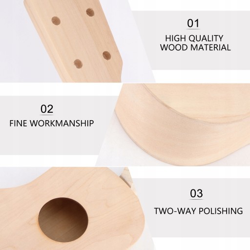 - Dobrze wyszlifowane i wstępnie nawiercone. Wszystkie części w zestawie, proste i przyjemne do zbudowania grywalne ukulele z instrukcją obsługi.
