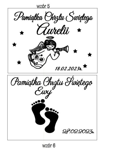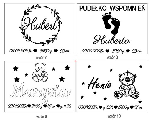 - Imię dziecka na pudełku (np. Antoni – jeśli na pudełku jest wzór z konieczną odmiana imienia, zostanie to wykonane),