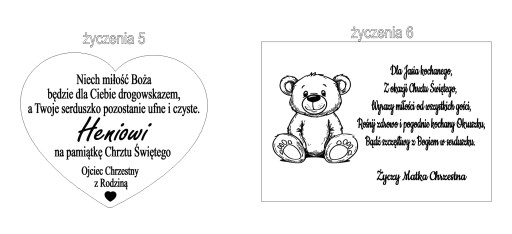- Imiona osób, które składają życzenia (np. Matka Chrzestna z Rodziną, Ciocia Ewa i Wujek Marek)