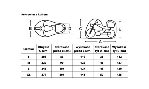 - Pełna ochrona motocykla - zewnętrzna i wewnętrzna.