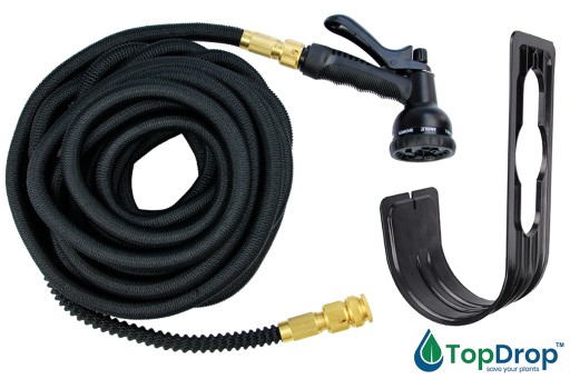 Ponadto wąż elastyczny TOP DRIP PREMIUM został starannie wykonany (elegancki czarny kolor oraz mosiężne szybkozłącza) i doskonale komponuje się z przestrzenią w ogrodzie oraz przy domu.