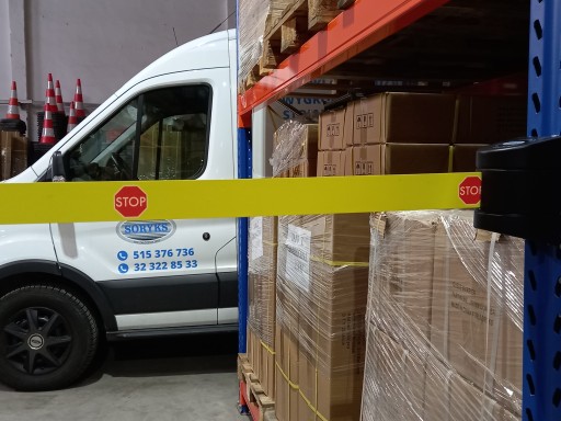- Zestaw zawiera kasetę naścienną z taśmą odgradzającą