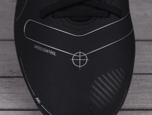 - Podeszwa z odpowiednio rozmieszczonymi kołkami zapewnia maksymalną przyczepność na boisku, co pozwala na błyskawiczną zmianę kierunku i natychmiastowe zatrzymanie.