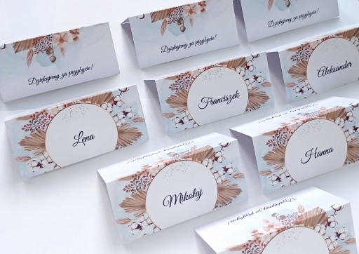 Winietki wysyłane są do Państwa w formie złożonej na pół (gotowy produkt do rozmieszczenia na stole). Nic nie muszą Państwo sami składać.