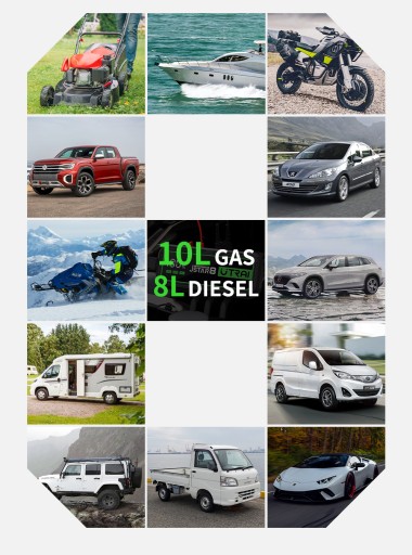 rozrusznik samochodowy. Pojemność 20 000 mAh. Maksymalny prąd szczytowy - 3000 A. Uruchamia wszystkie silniki benzynowe do 10 litrów, silniki Diesla do 8 litrów. Nadaje się do samochodów osobowych, ciężarowych, motocykli, łodzi, małych jachtów. Wyjście USB do ładowania urządzeń przenośnych. Ekran LCD. Wbudowana latarka z 4 trybami pracy.