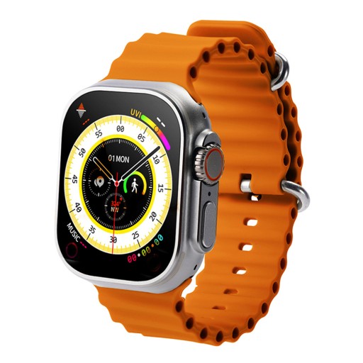 Obudowa: 49 mm obudowa ze stopu tytanu 1:1 z metalowym przyciskiem blokady paska i prawdziwą śrubą z tyłu. (inteligentny zegarek)