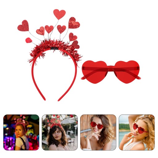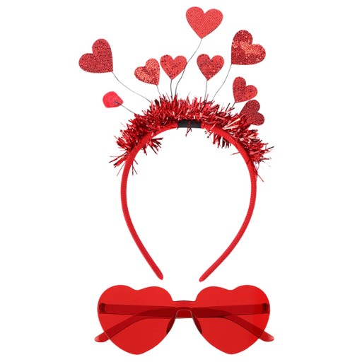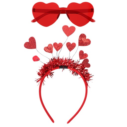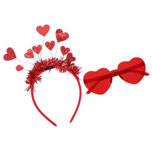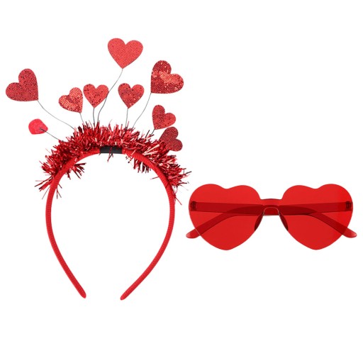 Komplet Walentynkowy - opaski i okulary na wesele z motywem serca