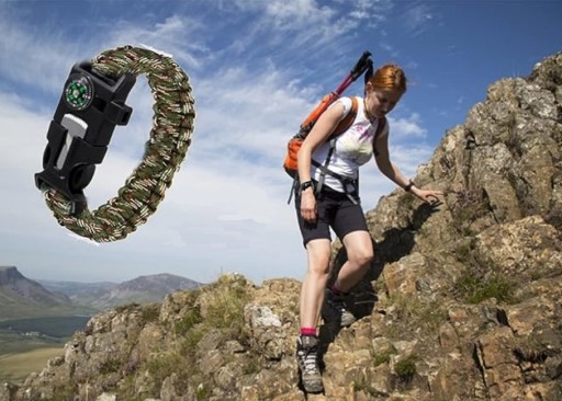 Bransoletka jest wyposażona w kompas, gwizdek, skrobak oraz blaszkę, która może spełnić rolę małego ostrza. Dzięki niej rozpalisz ogień, zaalarmujesz o niebiezpieczeństwie, wyznaczysz kurs, zwiążesz bagaż i użyjesz do wielu innych zadań.