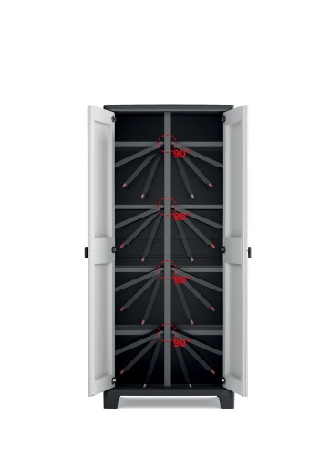 Do produkcji wielofunkcyjnej szafy Titan zastosowano najwyższej jakości tworzywo sztuczne, dzięki czemu całość konstrukcji cechuje się niebywałą wytrzymałością. Wielofunkcyjna szafa Titan jest w wodoszczelna, przez co doskonale sprawdzi się również na zewnątrz - na balkonie lub tarasie. Model wyposażony został w praktyczne i ładowne półki - o maksymalnym obciążeniu do 15 kg każda. Dużym atutem jest możliwość dostosowania półek do wysokości przechowywanych przedmiotów. Ergonomiczne i mocne uchwyty zapewniają optymalny komfort i bezpieczeństwo podczas otwierania i zamykania drzwiczek. Możliwość regulacji wysokości nóżek, estetyczne wykończenie oraz kontrastowe zestawienie kolorystyczne znakomicie odnajdą się w nowoczesnych wnętrzach!