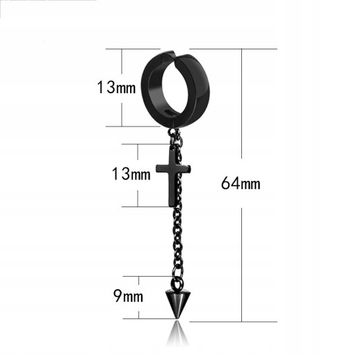 2x2 szt. Punk Rock Style Non-Piercing Klip Ucha Kolczyki Krzyżyki 64mm Czarny