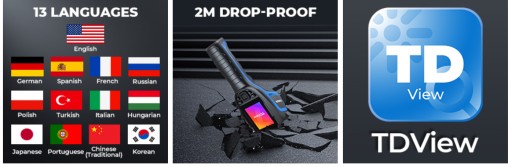Dzięki wodoodporności IP54 i konstrukcji odpornej na upadek z wysokości 2 metrów (6,6 stopy) TC004 stanowi proste, profesjonalne i wydajne rozwiązanie do diagnostyki termicznej, konserwacji domu, konserwacji sprzętu mechanicznego, kontroli budowy, rolnictwa, leśnictwa i opieka nad zwierzętami.