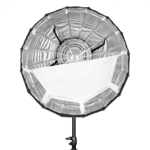Przypominająca kielich tulipana, bardzo głęboka czasza tego softboxa to jedna z jego ważnych cech. Ten kształt sprawia, że użytkownik może bardzo precyzyjnie kontrolować to, gdzie pada światło.