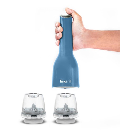 - Zakochaj się na nowo w świeżo mielonych przyprawach! Dzięki elektrycznemu młynkowi FinaMill z wymiennymi wkładami możesz mieć szeroką gamę przypraw i ziół i na wyciągnięcie ręki.