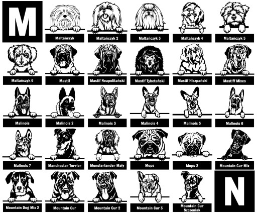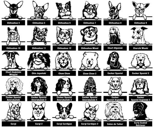 - Do wyboru 350 plików graficznych ze wszystkimi rasami psów