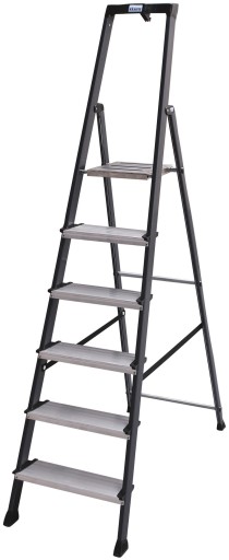 Drabina wolnostojąca ze stopniami, dedykowana pracom wymagającym zapewnienia komfortu i higieniczności. Opis: