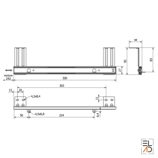 - Prosty montaż! Półka i prowadnice są skręcone, wystarczy przykręcić mocowania do prowadnic a całość pod blat.