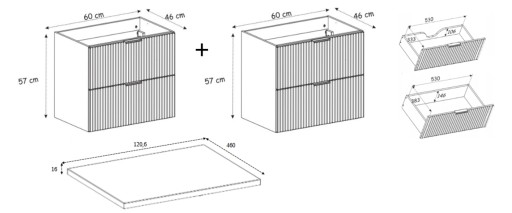 Stworzona w nowoczesnym i stylowym designie, ta kolekcja wyróżnia się modnymi, ryflowanymi frontami, wykonanymi z wysokiej jakości płyty MDF. Korpus mebli z płyty laminowanej gwarantuje trwałość i odporność na warunki łazienkowe.