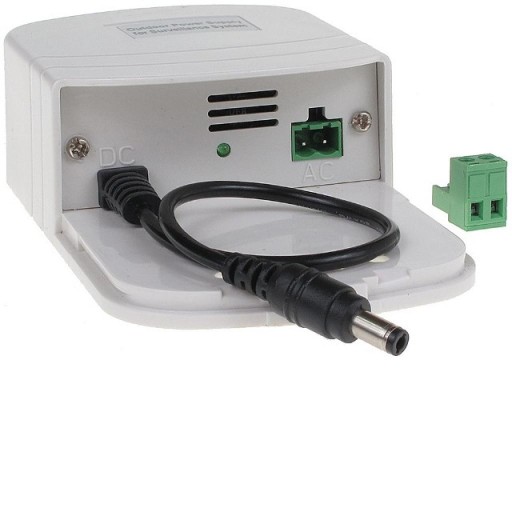Zasilacz impulsowy firmy Protec w estetycznej bryzgoszczelnej obudowie Przystosowany do montażu zewnętrznego na murze (dla IP53 zalecany jest montaż pod zadaszeniem) Złącze zasilania kamery i wizji mieści się bez problemu wewnątrz obudowy zasilacza Poprawny montaż zasilacza możliwy jedynie w pozycji pionowej, złączami do dołu