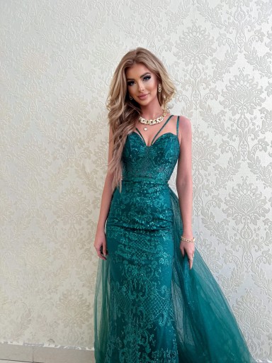 Fara BUTELKOWA ZIELEŃ DŁUGA SUKIENKA Z TIULEM M