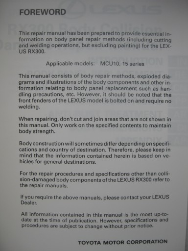 Jest to instrukcja wydana przez Toyota wyłącznie dla swoich serwisów na całym świecie