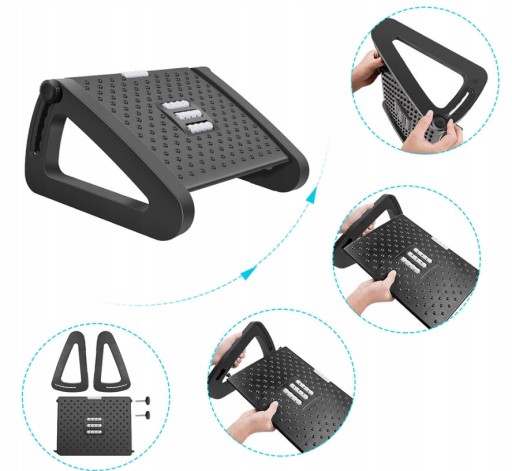- Podnóżek do ergonomicznego elementu przeznaczonego do spożycia. Pomoże Ci zastosować ustawienie siedzenia i uregulować przepływ krwi. Podczas pracy możesz także odpoczywać i zatrzymać się.