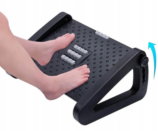 - Ulepszony podnóżek biurka może dotyczyć Twojego obowiązku masażu. o powierzchni teksturowanej i dużej, swobodnie pływającej, uderzającej w płaskie wypustkami i rolkami masującymi, które mogą być natychmiastowe.