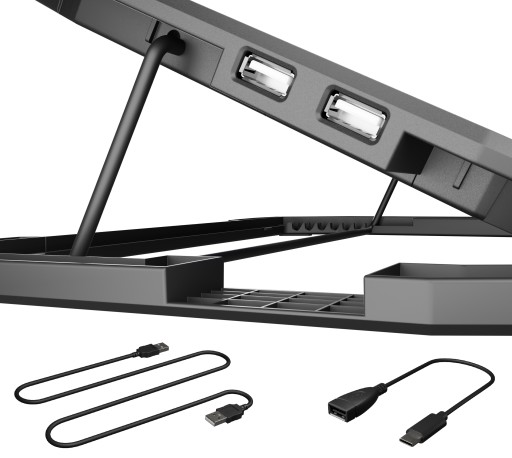 - W zestawie znajduje się adapter umożliwiający podpięcie podstawki do portu USB-C w laptopie