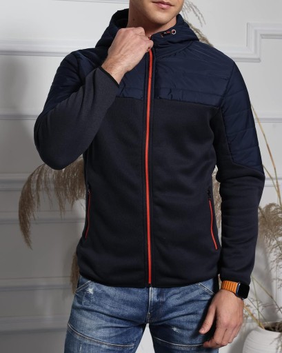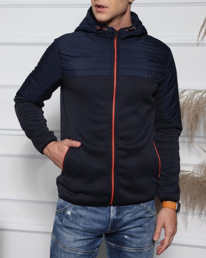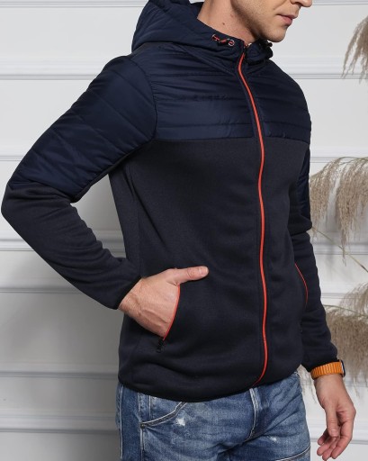 Cechy: Męska luźna bluza z kapturem z długim rękawem, modny wzór w szyciu, elastyczne mankiety i obszycie, pełny zamek błyskawiczny, dwie boczne kieszenie na zamek błyskawiczny.