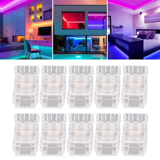 2. Niezawodny materiał: nasze złącza do taśm LED są wykonane z niezawodnego materiału PC, mocnego i bezpiecznego, niełatwego do złamania; Drobne rzemiosło, może być używane przez dość długi czas.