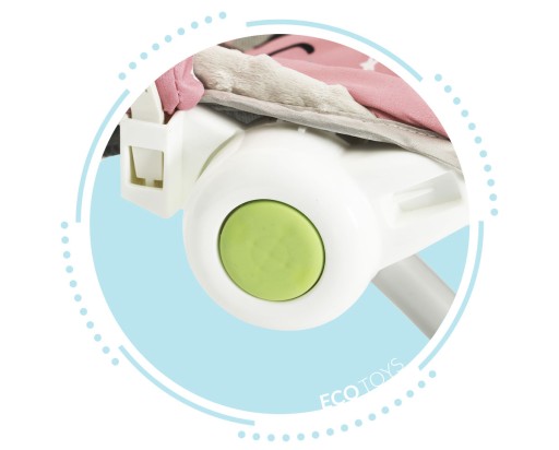 Na obu bokach leżaczka znajdują się przyciski, dzięki którym zwalniana jest blokada oparcia, a tym samym można je rozłożyć do pozycji leżącej lub unieść do pozycji bardziej wyprostowanej. Dzięki tej funkcji leżaczek idealnie dopasuje się do sytuacji, gdy dziecko ma ochotę na zabawę, oparcie ustaw podniesione, jeśli Twój maluch ma ochotę na drzemkę, połóż oparcie do pozycji leżącej.
