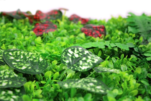 Liście umieszczone na elastycznej siatce łudząco przypominają naturalną roślinność.