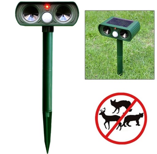 Oferowany przedmiot to ultradźwiękowy odstraszacz gryzoni. Ultradźwiękowy odstraszacz zwierząt z czujnikiem ruchu na podczerwień, zasilany jest energią słoneczną. Urządzenie emituje fale dźwiękowe o wysokiej częstotliwości, które są nieprzyjemne dla zwierząt takich jak: psy, koty, dziki, zające, ptaki, kuny, myszy, szczury i wiele innych. Skutecznie zniechęca je do podchodzenia do źródła takich sygnałów. Odstraszacz jest bezpieczny dla zdrowia zwierząt oraz ludzi.