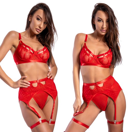 Całość kompletu ozdobiona jest finezyjnymi detalami, które dodają mu subtelności i elegancji. Pozwala kobietom poczuć się pewnie, atrakcyjnie i niezwykle kobieco. Idealny na wyjątkowe chwile, które zasługują na niezapomniany akcent zmysłowy.