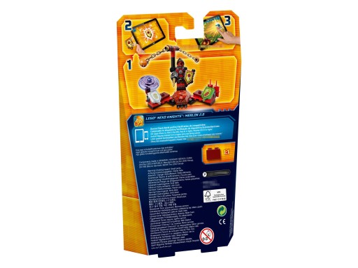 Niepokonany Władca Bestii ma może wybuchowy charakter, ale tym razem ma dynamit w rękach! Zakręć szalonymi Globlinami na łańcuchach albo pokonaj wrogów, ciskając w nich laskami dynamitu. Wyssij energię swoich wrogów, by ich ostatecznie unicestwić! Podnieś swoją wartość bojową, skanując tarcze 3 mocy NEXO. Zbierz jak najwięcej unikalnych zdolności w postaci cyfrowej, aby przechytrzyć przeciwników w darmowej aplikacji LEGO® NEXO KNIGHTS™: MERLOK 2.0. Zeskanuj 3 moce NEXO: Atak globlinów, Duchowy wir i Dynamoc.