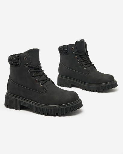 Ocieplane trapery damskie, wykonane z eko nubuku. Cholewka wiązana, w środku ocieplenie w formie futerka. Konkretne buty na złą pogodę!