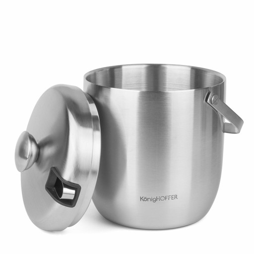 Srebrne wiaderko do lodu ze szczypcami Konighoffer Oris 2,8 l satyna wykonane jest ze stali nierdzewnej. Jego wielkość pomieści np. klasyczną butelkę alkoholu. Świetnie sprawdzi się na przyjęciu. Możesz z jego pomocą udostępnić gościom kostki lodu do drinków. Dzięki metalowemu uchwytowi bezpiecznie przeniesiesz wiaderko razem z lodem. Model jest trwały oraz dobrze zniesie użytkowanie i wilgoć. Sprawdzi się m.in. jako element romantycznego wieczoru przy winie lub szampanie. Ma też konstrukcję dającą izolację termiczną zawartości. Szczypce dołączone do kompletu ułatwiają nakładanie kostek. Schowasz je w pokrywce. Zestaw zawiera także łyżeczkę koktajlową do mieszania lub jedzenie deserów w wysokich szklankach.
