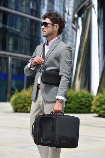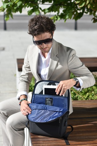 Plecak na laptopa z odpinaną kieszenią, którą można przypiąć do paska na spodnie. Kieszeń może być wykorzystywana do przenoszenia dokumentów, portfela i innych ważnych rzeczy. Dzięki odpinanej kieszeni można ją zabrać ze sobą, gdy chcemy plecak zostawić w samochodzie lub hotelu. Plecak wykonany z impregnowanego materiału, wodoodporny a jednocześnie odporny zarówno na przecięcia jak i przedarcia. Zaprojektowany tak, aby spełniał wszystkie funkcję uniwersalnego plecaka oraz umożliwiał bezpieczny transport sprzętu elektronicznego.
