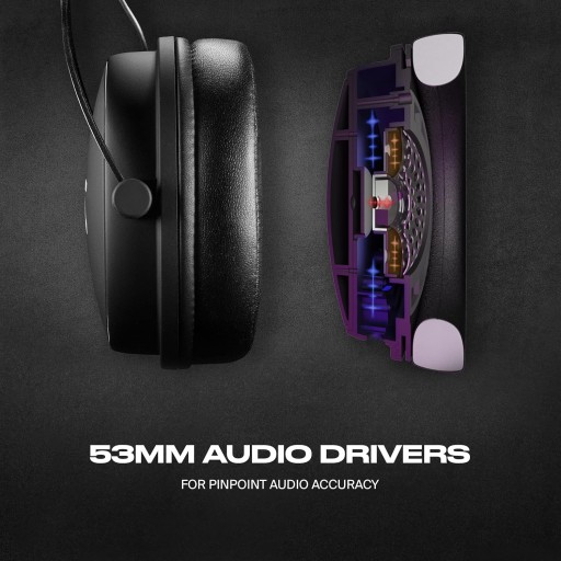 - Przetworniki e-sportowe 53 mm zapewniające precyzyjny dźwięk kierunkowy z indywidualnymi komorami dźwiękowymi
