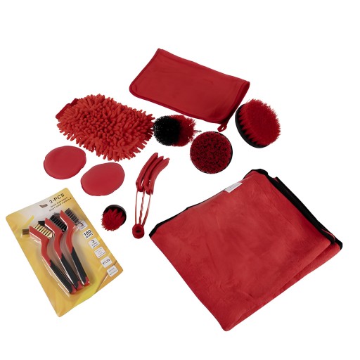- Wysokiej jakości szczotki, rękawica myjąca, ręczniki i miotełka, umożliwiające skuteczne usuwanie kurzu, brudu i pyłu z trudno dostępnych miejsc w różnych pojazdach.