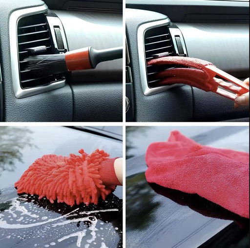 - Wysokiej jakości szczotki, rękawica myjąca, ręczniki i miotełka, umożliwiające skuteczne usuwanie kurzu, brudu i pyłu z trudno dostępnych miejsc w różnych pojazdach.