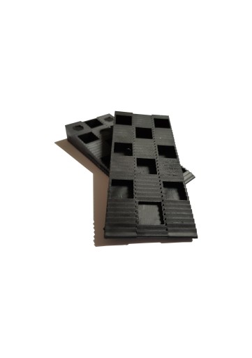 Nasze kliny dzięki ząbkowanej powierzchni nie przesuwaja się, można je łączyć ze sobą w celu uzyskania odpowiedniej grubości. Wyprodukowane zostały z wytrzymałego i odpornego na warunki atmosferyczne tworzywa.