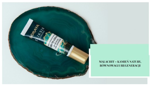 - Malachit – wyjątkowy kamień szlachetny, o przepięknej barwie, eliminuje wolne rodniki odpowiedzialne za przyspieszone starzenie, dodaje formułom elegancji.