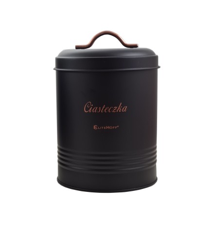 Puszki na cukier, herbatę i kawę oraz ciasteczka z tej kolekcji mają również kształt walca oraz eleganckie, złote pokrywki.