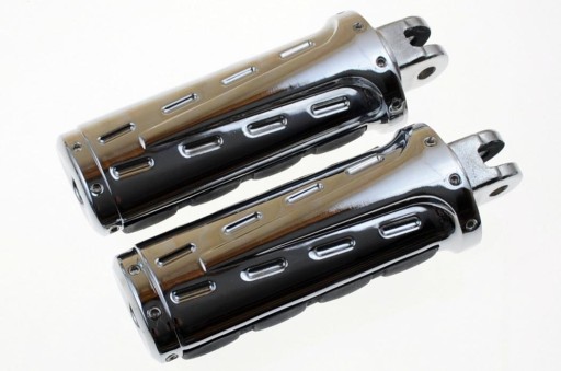 - Chromowane z czarnymi wypukłymi elementami zapobiegającymi ześlizgiwaniu się nogi z podnóżka.