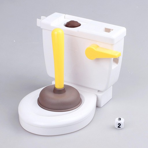 ROZGRYWKA: Jest to gra, która ćwiczy szybki refleks. Najpierw zainstaluj kupę, a następnie włóż kostki do toalety, naciśnij uchwyt, aby wypadły kostki, gdy pojawi się liczba, naciśnij tłok zgodnie z liczbą, gdy kupa wyleci z toalety, pierwszy gracz, który złapie kupa dostanie monety do gry, a jeśli wystarczająco dużo w powietrzu, dostanie dwie monety do gry.
