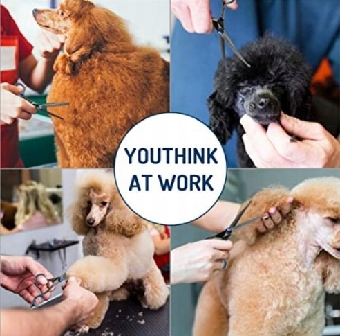 - 【Wysokiej jakości nożyczki do salonu fryzjerskiego dla psów】 Te nożyczki do salonu dla psów są wykonane z wysokiej jakości stali nierdzewnej. Trwała, doskonała dokładność i ostrość, nadaje się do pielęgnacji wielu zwierząt, wystarczy stworzyć każdą fryzurę dla Twojego pięknego zwierzęcia domowego. Ostrze nożyc jest bardzo gładkie, ostre i trwałe, nie rdzewieje. Zmniejsza to prawdopodobieństwo, że sierść zwierzęca zostanie zraniona przez pociągnięcie i sprawia, że Twoje zwierzę domowe cieszy się szczęśliwym procesem pielęgnacji.
