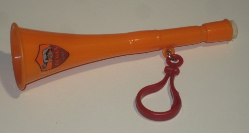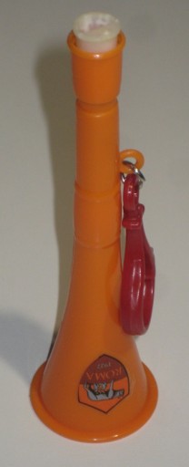 Mini trąbka stadionowa - zawieszka - w barwach AS Roma. Produkt oficjalny. Używana. Stan jak na zdjęciach. Z Włoch. Cena za 1 szt.