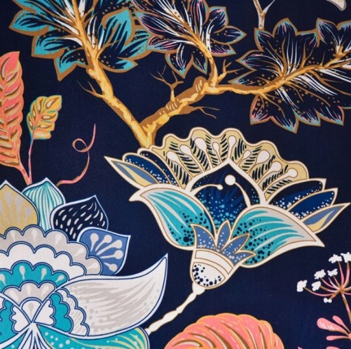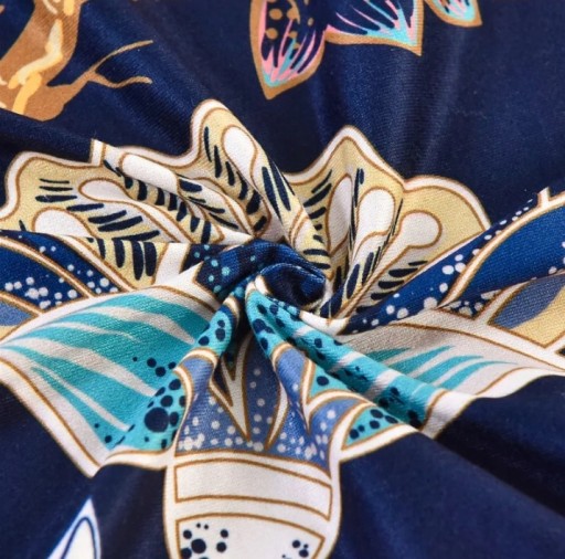 POKROWIEC NA FOTEL USZAK FOTEL SKRZYDŁOWY ELASTYCZNY GŁADKI O WYMIARACH 80 / 90 / 120 CM W KOLORZE GRANATOWYM WZÓR KWIATY