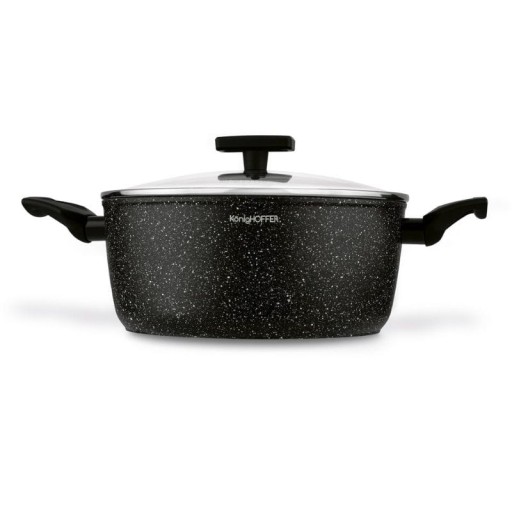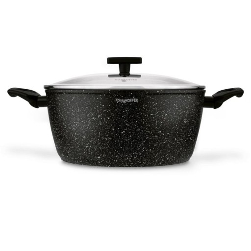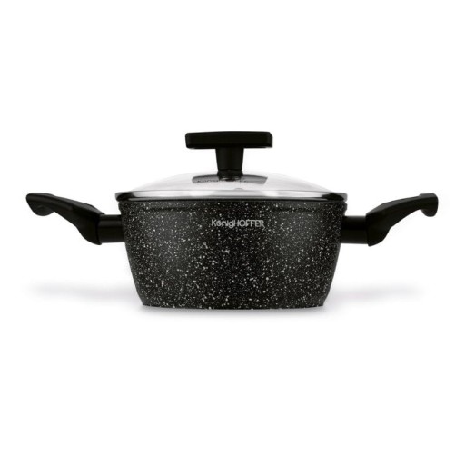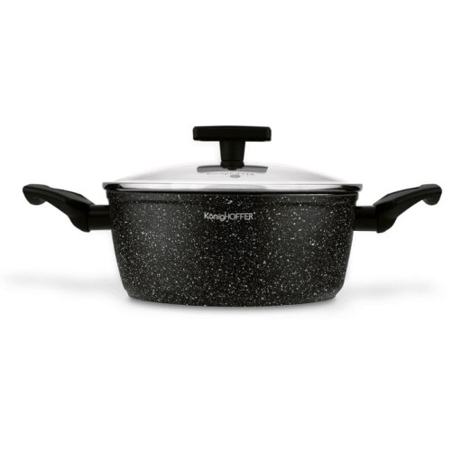 Komplet garnków KonigHOFFER Hudson 8 elementów to połączenie doskonałej funkcjonalności z niezwykłą wytrzymałością. Ich aluminiowe korpusy kute techniką forged w wysokiej temperaturze są solidne, doskonale wyważone i efektywnie zarządzają ciepłem.
