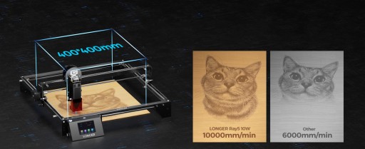 Dzięki technologii rozproszonej, rozprzestrzeniającej się prędkości grawerowania 10000 mm/min, jest ona w stanie wykrycia baterii drewnianą o grubości 0,8 cala / 20 mm i akrylu 1,2 cala / 30 mm. Dzięki obszarowi roboczemu 400 * 400 mm możliwe jest zastosowanie dodatkowej liczby operacji w tym samym czasie.